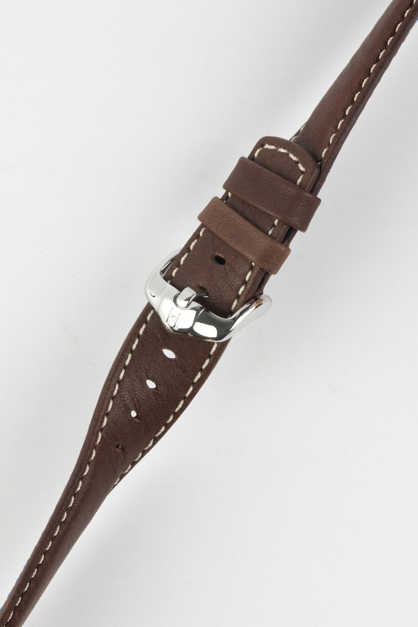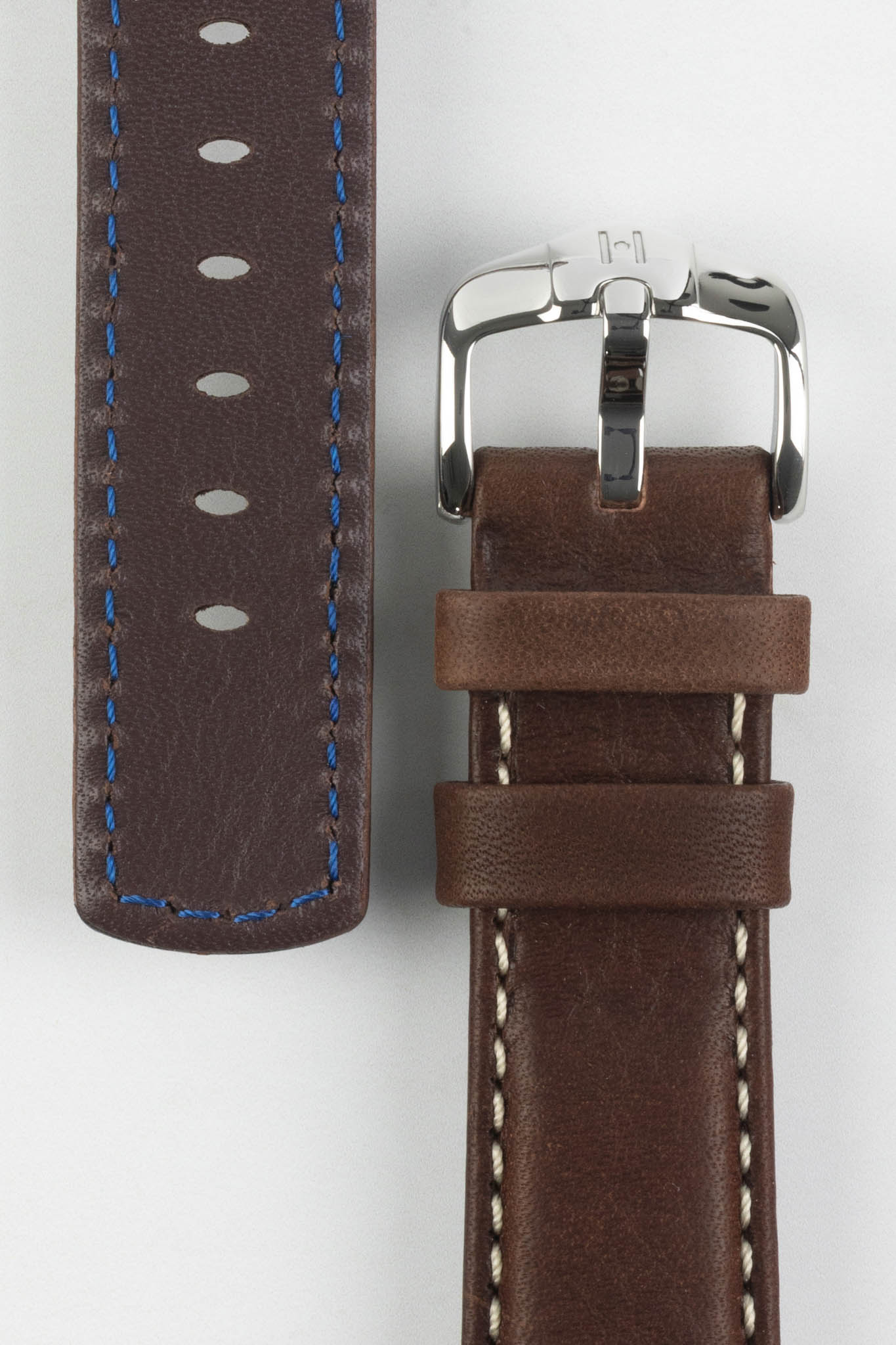 The Mariner's signature is its finish; a wax-coating atop traditional saddle leather creates a surface with a pleasingly velvet-like texture, while also providing the strap with water resistance, making it an excellent multipurpose diving strap. The look is completed with rectangular padding and parallel contrast stitching, making for a modern, bold accent to an otherwise traditional leather strap.