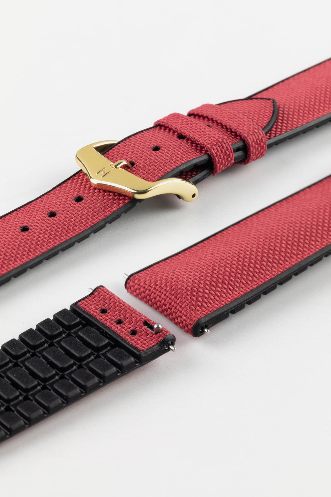 Embossed with a canvas-style texture, the strap embraces its ocean-faring heritage with new eco-conscious materials. The underside retains the premium caoutchouc rubber with its signature ventilated structure, ensuring comfort, durability, and 100% animal-free, vegan-friendly design.