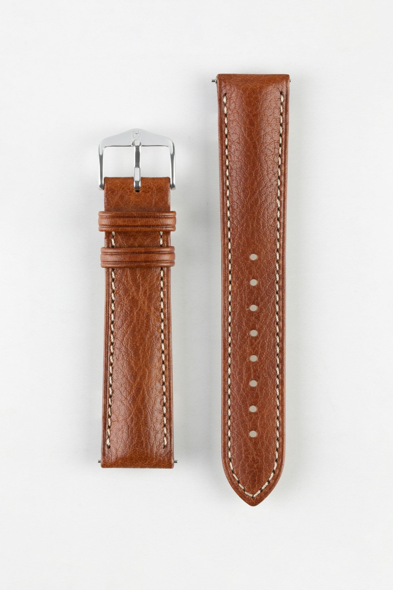 Hirsch BOSTON Quick-Release Buffalo Calfskin Leather Watch Strap in GOLD BROWN