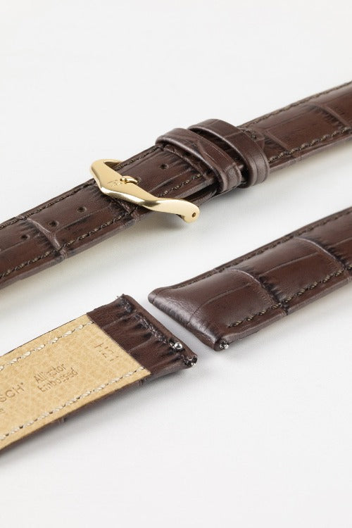 Hirsch DUKE Quick-Release Alligator Embossed Leather Watch Strap in BROWN