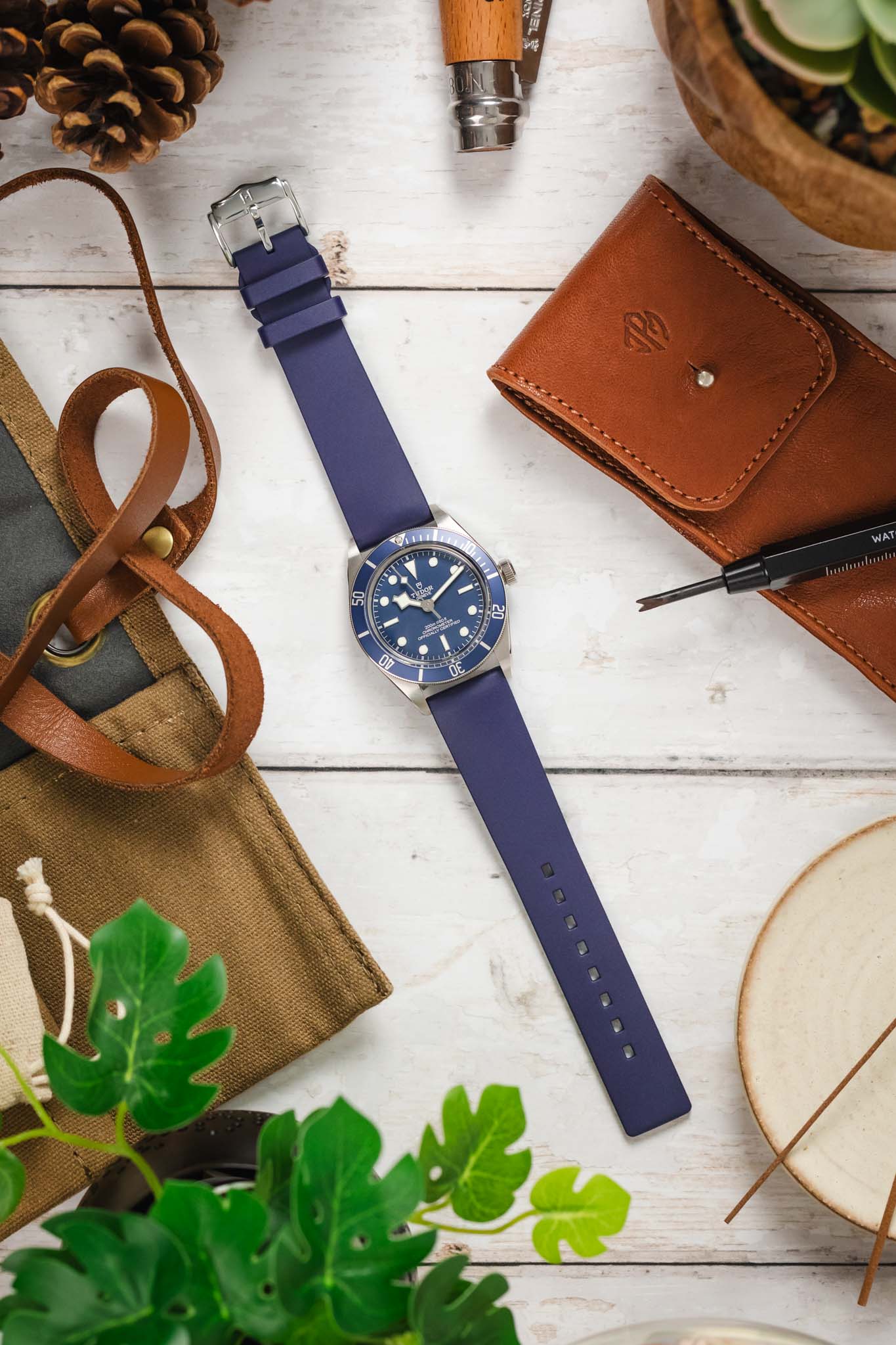 Hirsch PURE Natural Rubber Watch Strap in BLUE