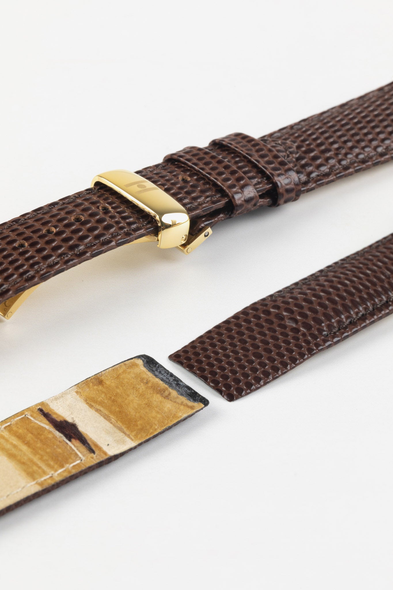 Hirsch RAINBOW Lizard Embossed Open Ended Watch Strap in BROWN