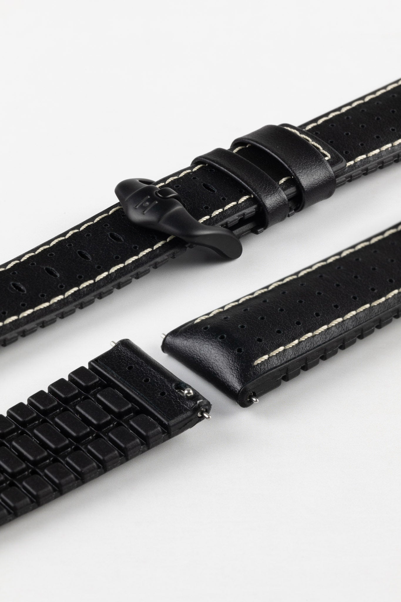 Hirsch TIGER Perforated Leather Performance Watch Strap in BLACK