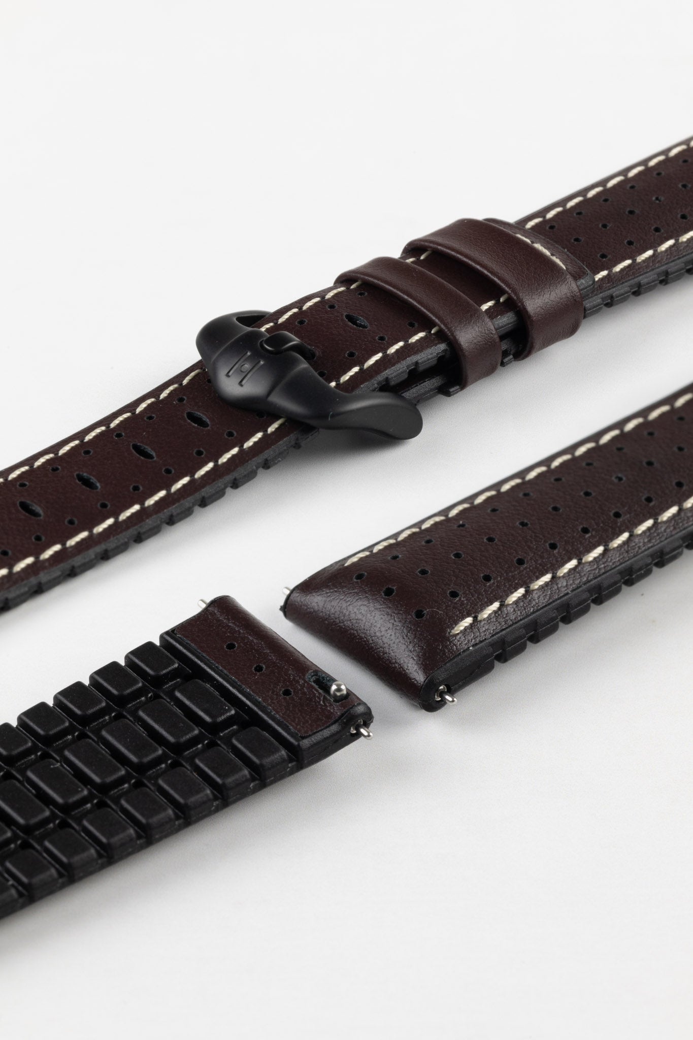 Hirsch TIGER Perforated Leather Performance Watch Strap in BROWN